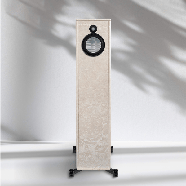 This design also features a rear-facing port which allows for fine-tuning of the system’s bass response by adjusting the speaker’s placement off the front wall. The larger cabinet not only offers better acoustic performance, but it truly allows the natural stone finishes to shine- a stunning acoustic and visual achievement.