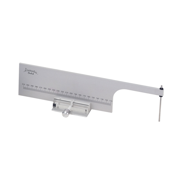 Template/Universal Teaching including adjustment data catalog for 250 tonearms. With the tonearm template with integrated overhang template, the distance of the platter axis to the tonearm pivot point and the overhang can be precisely adjusted.
