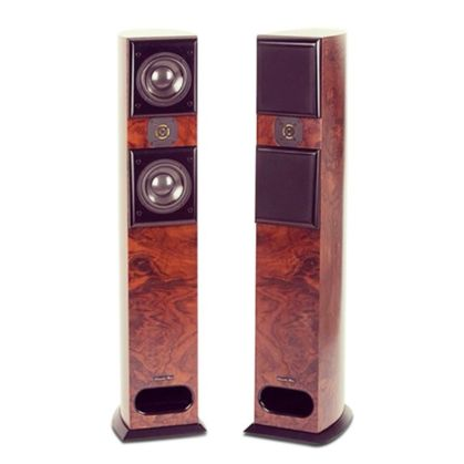 The Adagio floorstanding loudspeaker is a two-way transmission-line system featuring a 1.5 inch circular ribbon tweeter and dual 6.5 inch midrange/woofer "underhung" voice coil, ceramic-coated drivers. The three drivers are configured in a time and phase aligned D'Appolito MTM arrangement providing lifelike imaging over a large sweet spot range.