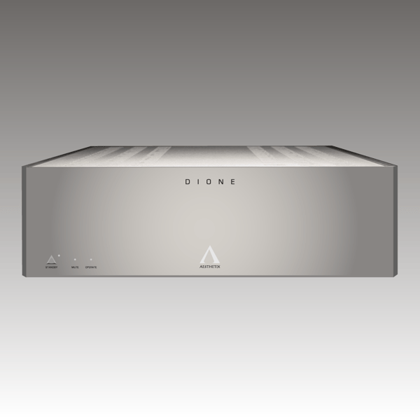 As the driving force in your audio system, Dione is built to render your music with power and finesse. This hybrid design draws inspiration from our award-winning Atlas power amplifier and Mimas integrated amplifier. Featuring zero-feedback and differential balanced bridge outputs, Dione liberates your music with impact and inspiration. DESIGN AND INNOVATION Dione's design, derived from decades of research and development, leverages the strengths of our cutting-edge tube and solid-state circuits. Featuring a vacuum tube input / gain stage (one 6922 / 6DJ8 per channel), followed by an output module consisting of a FET input stage, bipolar driver stage, and bipolar output stage, Dione is a masterpiece of hybrid synergy. The zero-feedback gain stage utilizes one 6DJ8 (6922) vacuum tube per channel in a fully differential, balanced configuration, preserving the dimensionality and transcendent performance captured in your favorite recordings. A single-ended input will be balanced at this stage, so the differential topology is taken advantage of even for single-ended inputs. As a standard part of our build process, we burn in our tubes for over 100 hours before testing to ensure the most accurate results. We then do a complete FFT distortion analysis on each tube and match the set for your amplifier to within .2dB of each other. Our zero-feedback, differentially balanced solid-state output stage is constructed from some of the best parts available, including Roederstein™ resistors from Reliable™ Capacitors, and the highly sought after Toshiba 2SK246/2SJ103 FETs. We painstakingly match individual FET input and bipolar output devices to ensure channel matching, linearity, and stability, allowing Dione to drive any speaker load. A key part of any Aesthetix piece is our devotion to overbuilt, state-of-the-art, fully-regulated power supplies. To begin, we design and manufacture our transformers in-house, ensuring the best possible voltage source feeds our power supplies. These Aesthetix low flux transformers incorporate multiple secondary windings, delivering pure, stable power to each critical circuit. Discrete regulation, which provides a precisely tailored response, is used for critical analog sections such as high voltage for tubes, and low voltage for the vacuum tube current source. Other isolated, fully regulated supplies are provided for the vacuum tube heaters and control system. A hallmark of Aesthetix components is the simple, timeless beauty of the casework and industrial design. Dione's all-aluminum machined chassis, manufactured in Santa Barbara, California, provides a solid foundation for its performance. Additionally, our thoughtful construction employs a stainless steel transformer shield to protect sensitive circuitry, ensuring no detail is left unresolved. Built to amaze you, Dione is ready for a lifetime of performance. FEATURES AND FUNCTIONALITY Designed to meet the needs of modern audio systems, we've built in some valuable features without compromising the performance of your amplifier. Analog inputs, balanced or single-ended: Balanced circuitry is one of our core design tenets because of its ability to reject noise, allowing you to delve deeper into your favorite music. Dione offers both balanced and single-ended inputs. We suggest using the balanced connection whenever possible. If single-ended is your only option, don't worry; we immediately convert the signal to balanced inside Dione, taking full advantage of the amplifier's differentially balanced design. Standby Mode: When you aren't actively listening to your system, we provide a mode where the tubes are turned off, but the solid-state circuitry remains powered on in a reduced-bias mode. This mode preserves the life of your tubes and keeps Dione ready for when your musical mood returns, while also conserving power consumption and heat. Control: Dione features an RS232 DB-9 connector on the rear panel, allowing it to connect to advanced control systems. We also equip this amplifier with a 1/8" jack, allowing it to be conveniently triggered on or off by other equipment. CUSTOMIZATION We offer an additional option for your Dione, allowing it to fit into more unique systems. High pass crossover: For systems where ideal performance relies on rolling off the low frequencies to the main speakers, you can add a hardware-adjustable 6dB per octave high pass crossover to Dione. This option includes eight selectable frequencies accessible on the amplifier's rear panel.