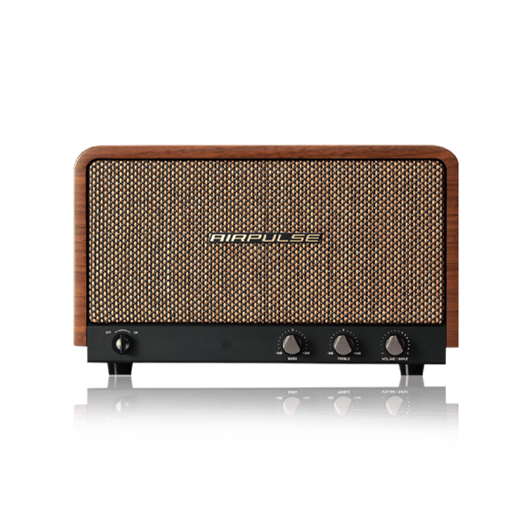 The AIRPULSE P100X is a multi-driver wireless desktop speaker system. Designer of P100X packs multiple drivers into the system, including a pair of patented A-Blade tweeters, and one proprietary 4.5-inch long-throw mid-woofer with an Aluminum diaphragm. With Qualcomm Bluetooth audio receiver and high-end digital power amplifier platform, all components are fine-tuned to work together seamlessly, housed in this well-constructed compact size cabinet with a retro appearance.