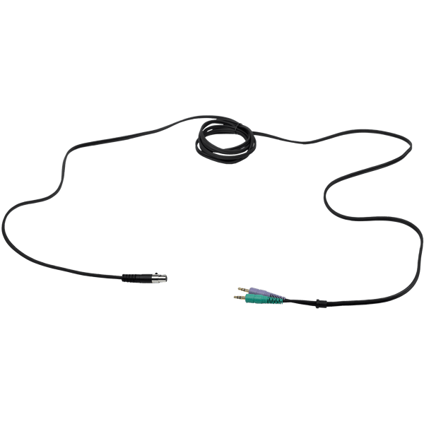 Headset cable for PC, conferencing. Detachable cable with a 6-pin mini XLR connector on one end that connects to AKG HSC headsets, and two 3.5mm (1/8") stereo mini jacks on the other end. Cable length: 3m (9.8 in.). Mic Mute is not supported by this cable.