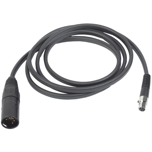 Headset cable for cameras / intercom. Detachable cable with a 6-pin mini XLR connector on one end that connects to AKG HSD headsets, and a 5pin XLR connector (male) on the other end. Cable length: 1.6 to 2.3 m (5.2 to 7.5 ft.).
