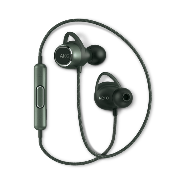 Introducing the AKG N200WIRELESS headphones. Meticulously crafted with an ergonomically-shaped hook and rounded housing for comfort and fit, they are distinguished by premium materials such as their durable fabric cable, exquisite metal housing and patterned accents. Engineered with a semi-closed back, to provide superior acoustic dampening, the AKG N200WIRELESS in-ear headphones deliver a reference level sound experience. Thanks to Apt-x technology and AAC high quality audio support, they provide uncompromised audio quality when streaming music wirelessly. With an 8-hour max battery life and a 10-minute speed charge for a handy 1-hour max additional battery supply, they are also equipped with a 3-button universal remote and microphone for easy calls and music management for extra on-the-go convenience. Immersing yourself in stunning, reference quality sound outside of your home is made even better thanks to the magnetic cables that avoid tangling. Plus, four different sized ear tips are provided to guarantee a perfect fit and our thoughtful accessory package includes a power cable, cleaning tool and carrying pouch.