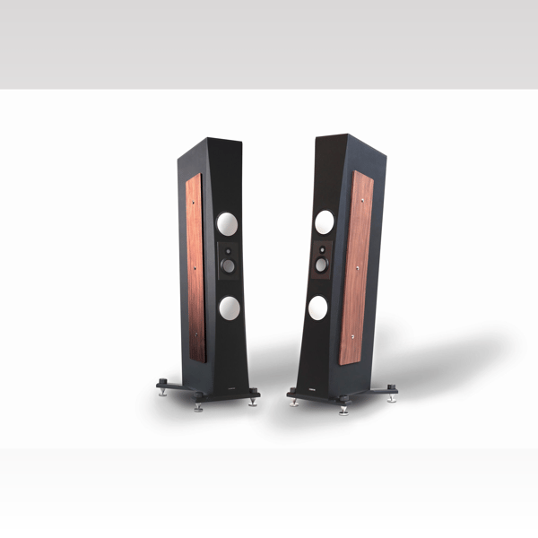 Alecta has a tower shaped cabinet that features high mass and optimal resonance absorption. Two solid and heavy metal plates, connected each other by steel threaded bars, stop any unwanted vibration.