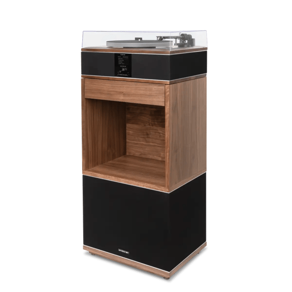 The Andover-One Premier combines the turntable, Upper Stand, and Subwoofer into a complete audio system that delivers immersive sound and sleek design. With amplified speakers, record storage, and a powerful subwoofer, this all-in-one solution fills your space with high-quality sound in an elegant, furniture-grade package.