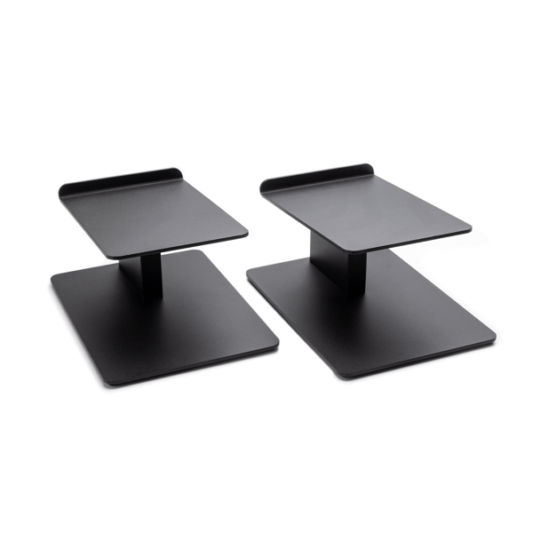 Discover the perfect blend of form and function with our sleek desktop speaker stands. Designed with Scandinavian elegance and built from durable black powder-coated steel, they ensure an optimal speaker angle to minimize tabletop sound reflections.