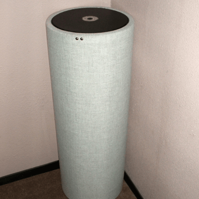 This design has adjustable Helmholtz bass traps. The elements of the acoustic circuit inside the TubeTrap can be adjusted by the owner or setup technician so that the response of the trap exactly matches the resonance response of the room and location in the room that the trap is being located in.