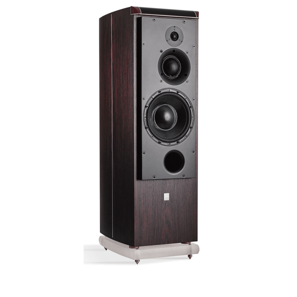 Loudspeaker in the photo is finished in Rosewood with a black acrylic ‘brow’ centre section and red ‘horns’.