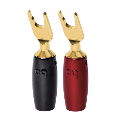 AudioQuest SureGrip 507 Multi-Spade connectors fit a standard banana jack and wire up to 7 AWG.