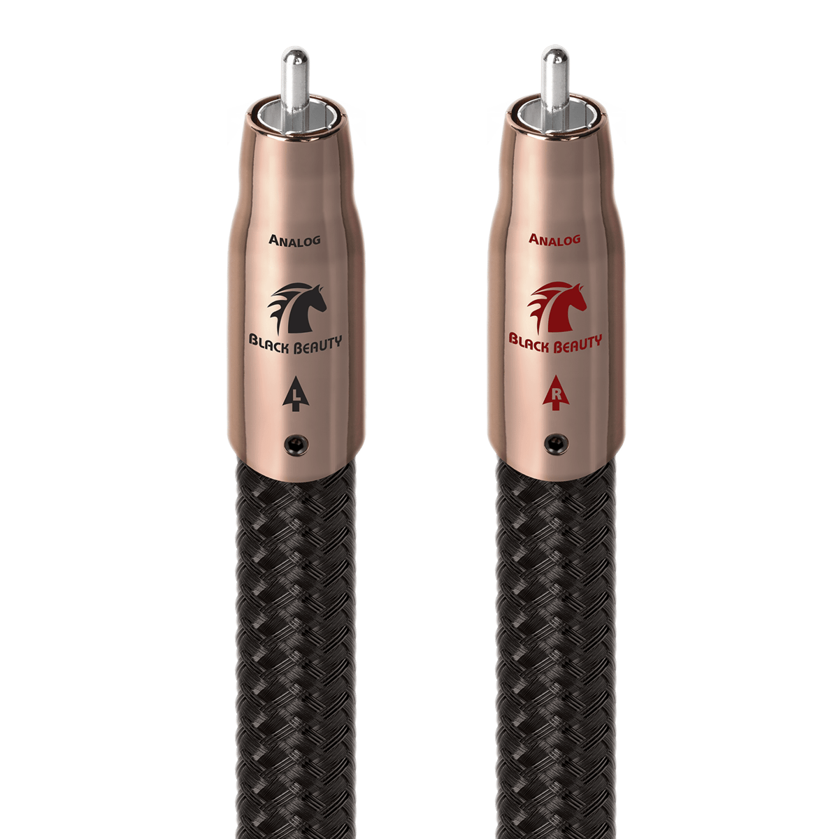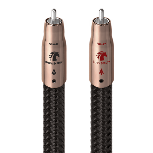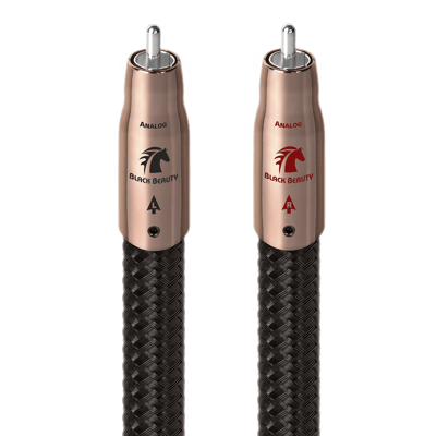 Black Beauty RCA features several AudioQuest design elements that work together to reduce distortion and efficiently dissipate radio-frequency noise. These include: Direction-Controlled Solid Perfect-Surface Copper+ (PSC+) conductors, Carbon/Graphene Mesh-Network, 0.5% Silver-Plated RF Drain-Wires, Copper-Plated Plug Casings, and Hanging-Silver over Red-Copper plugs.