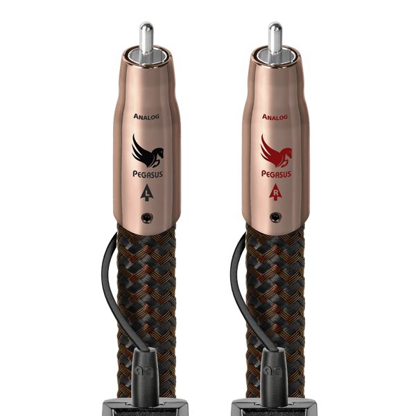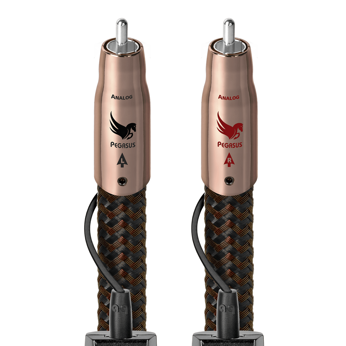 Pegasus RCA features several AudioQuest design elements that work together to reduce distortion and efficiently dissipate radio-frequency noise. These include: Direction-Controlled Solid Perfect-Surface Copper+ (PSC+) conductors, Carbon/Graphene Mesh-Network, 72v DBS, 6% Silver-Plated RF Drain-Wires, Copper-Plated Plug Casings, and Hanging-Silver over Red-Copper plugs.