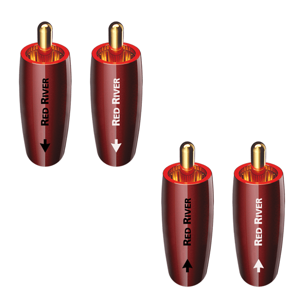 AudioQuest Red River RCA Field Termination Connector is Gold-Plated and offers arrows for denoting directionality on the barrel of the RCA connector.