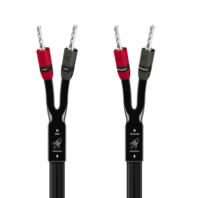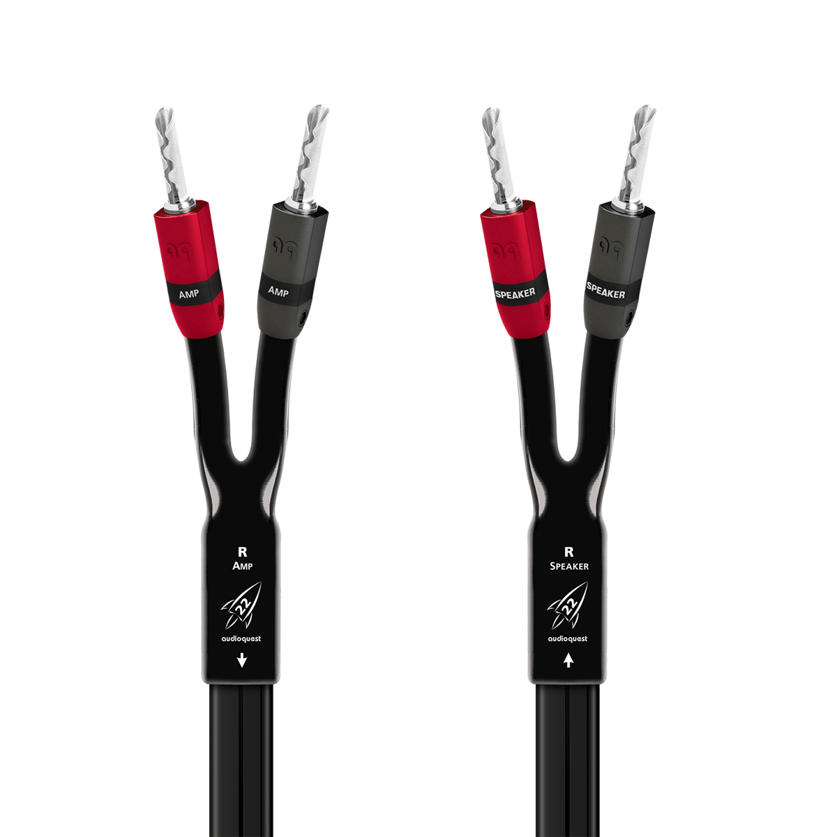 A typical speaker cable with parallel conductors has fairly high inductance, smearing energy across time, which results in sound that is dull and unfocused. In Rocket 11/22, the two conductors in each half of the cable are twisted around one another, providing lower inductance, greater clarity, and superior bass-to-treble frequency extension
