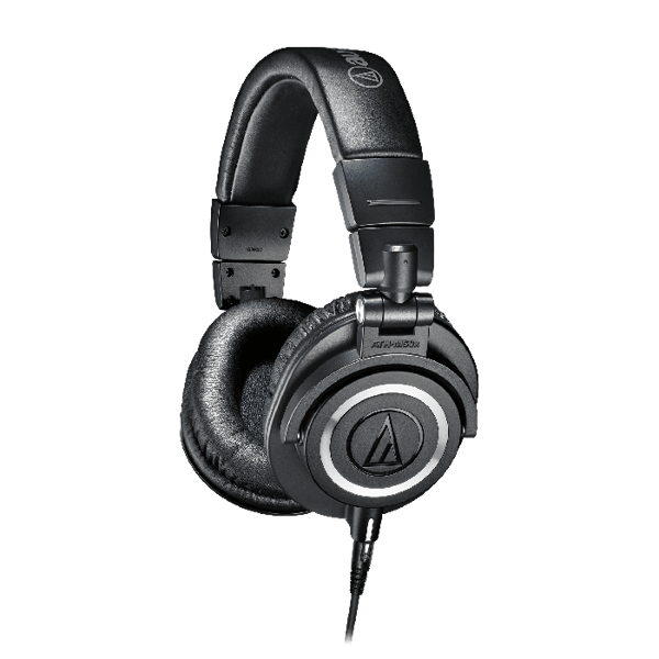 Constructed with professional-grade material, the ATH-M50x earpads and headband offer utmost durability and comfort. The ATH-M50x features 90° swiveling earcups for easy, one-ear monitoring, and are collapsible and fold flat for seamless traveling, making them great portable headphones.