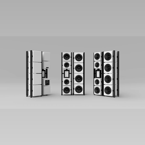 The Evo 4 is the highest achievement in AudioNec’s Evo line. This dual tower loudspeaker offers, thanks to its uncompromising design and components, the ability to effortlessly play any type of music, even in large rooms. With nothing less than eight 15-inch (38 cm) subwoofers per pair, and 10 drivers per channel, it is capable of playing from infrasounds at high levels without any distortion to the highest harmonics up to 45 kHz in impressive clarity and speed. In short, Evo 4 is an Evo 3 Signature enhanced with two impressive subwoofer towers making the difference.