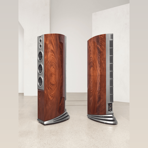 The low-frequency array of eight rear-mounted bass drivers is groundbreaking. Representing the equivalent surface area and displacement of a 15-inch woofer, it ensures profound bass extension with controlled articulation, creating a vast and open soundstage with a deep and involving bass.