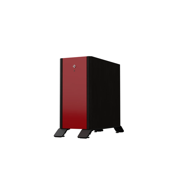 Maximum bass. Minimum space. The Twin Sub was developed as a compact yet powerful low-frequency solution for the TRIO G3 – incorporating technologies derived from our SpaceHorns, reimagined for maximum flexibility.At its core are two XB12 12-inch drivers, each featuring an enormous 6-inch voice coil. Their precision-engineered motor design, with a SingleFrame basket and ventilated magnet structure, ensures exceptional control and high efficiency – even at the deepest frequencies. A specially tuned Class-D amplifier with an integrated DSP controller delivers up to 1,000 watts of power to the drivers. The digital control enables precise tuning to the room and listening environment – creating a bass performance that is not just heard, but physically felt. What sets it apart: the downfiring configuration of both drivers, combined with oversized, downward-facing reflex ports. These generate an acoustically in-phase air mass that increases efficiency in the low bass region by up to 6 dB – with less excursion and greater dynamic headroom. The Twin Sub can be used either as a single unit (stereo mode) or in pairs (dual mono), adapting effortlessly to any room concept – whether placed centrally between the TRIOs, next to a wall, or directly alongside the speaker bases. Available in four elegant wood veneer finishes and with a custom-paintable front panel, the Twin Sub integrates visually and acoustically with the TRIO G3. A bass solution designed without compromise – for maximum performance in minimal space. 123