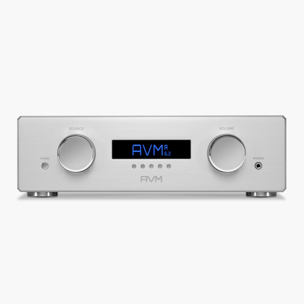 Refined, purist version of the OVATION A 6.2 MOS-FET integrated amplifier with Class A/AB high-current technology · 2 x 180/300 W (8/4 Ω) · Class-A headphone amplifier · Fully balanced volume control with 256 control steps · Revised power supply · 22 kg · Delivered in AVM OVATION Flightcase · Including Full Metal Remote Control RC 3 · CELLINI chrome version at extra cost