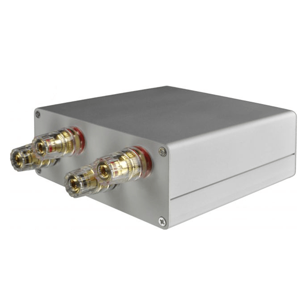 Woofe 1 is an accessory for easy connection of active subwoofers. The two inputs with pole terminals are connected to an amplifier output.