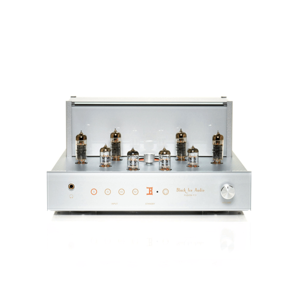 The Fusion F11 is a dual chassis design laced with carbon fiber and mirror-finished glass panels decked out with LED backlit touch sensors, that provide a rigid home for one of the newest circuits to date. The Odyssey Circuit is a dual-phase V-drive circuit that is one of a kind paired with our custom designed German grain oriented silicon steel core transformer based on the Hafler design. With EL84 power tubes, it pumps out 23 - 25 watts of pure tube magic depending on the power tubes. Using the Exact Biasing Vu meter, biasing the tubes is a breeze. The F11 features 4 RCA inputs, a sub out, and a chunky metal remote to keep you in control. The F11 final assembly and burn in is done by hand in our Maryland workshop.