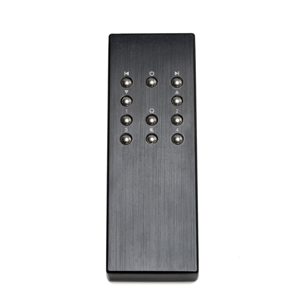 DAC/TRANSPORT Remote Shown. The metal remote is not compatible with the FX10. The Glass FX DAC is not capable of remote control.