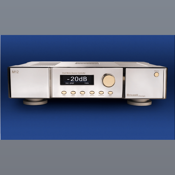 The M12 builds upon the proven design of the M1 SE D/A converter so your digital sources are handled and converted in the best way. To that we add to it a pure dual mono analog signal path with high resolution analog gain and level control, controlling the output stage of the D/A converter in the analog domain with no loss of resolution and pass thru analog inputs for your analog sources. Like the M1, the M12 is a dual mono design with 3 power supplies and separate left and right analog power supplies digital and analog processing. The M12 Platinum incorporates the latest Bricasti Design high-performance MDx processor.
