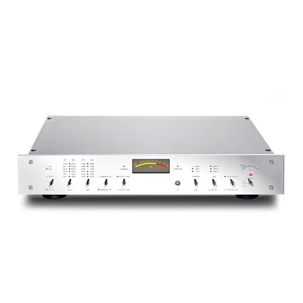 The classic chrome front panel immediately shows the versatility of this phono preamp. The array of toggle switches actuates a multitude of functions for playback, control and adjustment. The prominent VU meter is not a nostalgic design gesture but a necessary instrument to show the amplitude of the left and right channel as well as their mono sum. At the same time it displays any imbalances between left and right channel at a quick glance.