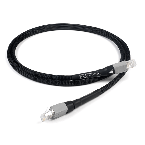 Signature Super ARAY streaming cable is a direct development of the Epic Streaming cable. The same high precision RJ45 connector (gold-plated contacts and soldered conductors) is used, along with the unique hard skin insulation. Compare performance however, and you’ll hear what happens when heavier gauge silver-plated conductors are fitted. Relative spacing of the conductors is changed and a more effective shielding system is used. The other big change is the switch from Tuned to Super ARAY conductor geometry – developed specifically for streaming cables.