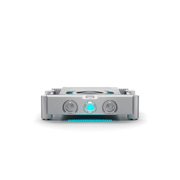 All metalwork is precision-machined from solid aircraft-grade aluminium, including Chord Electronics’ iconic Integra Legs. The fascia sports a 28-mm-thick front panel with a perfectly symmetrical aesthetic, centered around a spherical power on/off control with polychromatic lighting, flanked by illuminated volume and balance controls.