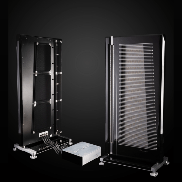The Clarisys Audio Studio + is the ultimate selection for sound aficionados seeking robust audio in sizeable spaces. Its modern design and neodymium magnets generate a precise and lively aural landscape, while a double-sided bass panel supplies remarkable impedance without compromising sonic clarity. Indulge in an optimal listening experience with the Clarisys Audio Studio +. Featuring ribbon tweeters beginning at 500Hz, the multi-segmented six-trace design ensures rigidity without any flex due to the aluminum substructure, and point-to-point copper foil internal wiring ensures supreme signal transference and musicality. Compared to its smaller counterpart, the Minuet +, the Studio + offers a larger imaging scale in all directions, augmented dynamics, bass power, and simpler driver operation.