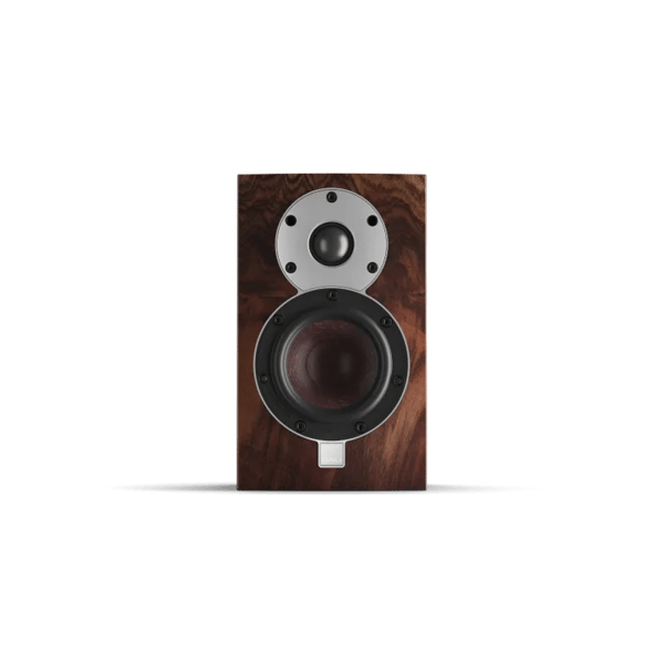 The DALI MENUET SE comes in a striking wild walnut veneer finish that's carefully matched to ensure each pair is truly unique.