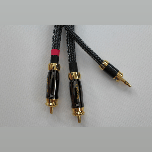 A high-quality cable for connecting portable devices such as Ipods to high-end audio components with RCA jacks. It comes standard with a Mini Plug at one end and a pair of Onyx RCA connectors at the other end. Prices listed are for 1.5 meter lengths. For custom lengths, contact us at gingko@gingkoaudio.com.