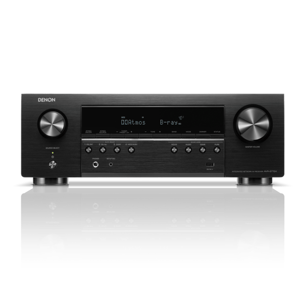The 7.2-channel AVR-S770H delivers 75W per channel up to a 7.2 or 5.2.2 speaker configuration—powerful enough to fill your mid-size room with Dolby Atmos and DTS:X surround sound. Combine with advanced HDMI on three of six inputs and one output, and the stage is set for incredibly immersive home theater experiences.