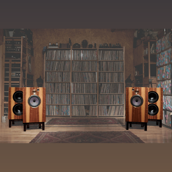 10” paper-cone woofer with a cast Bronze chassis and an all new woofer motor, fully optimized with a pure AlNiCo magnet, copper Faraday rings above and below the gap, a titanium former, and a machined bronze phase plug resulting in better magnetic and inductive linearity, increased sensitivity, and an order of magnitude lower distortion throughout most of the frequency range.
