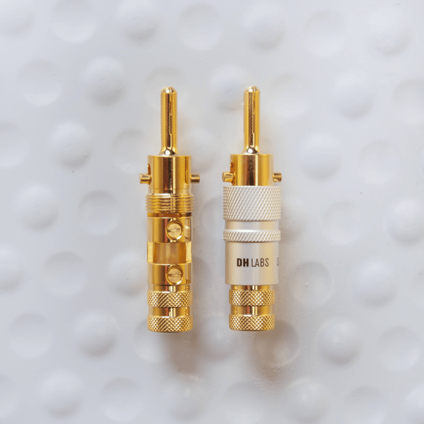 High conductivity enhanced-copper alloy contact pins locking banana plugs in two sizes to accommodate varying cable gauges. SOLD INDIVIDUALLY.