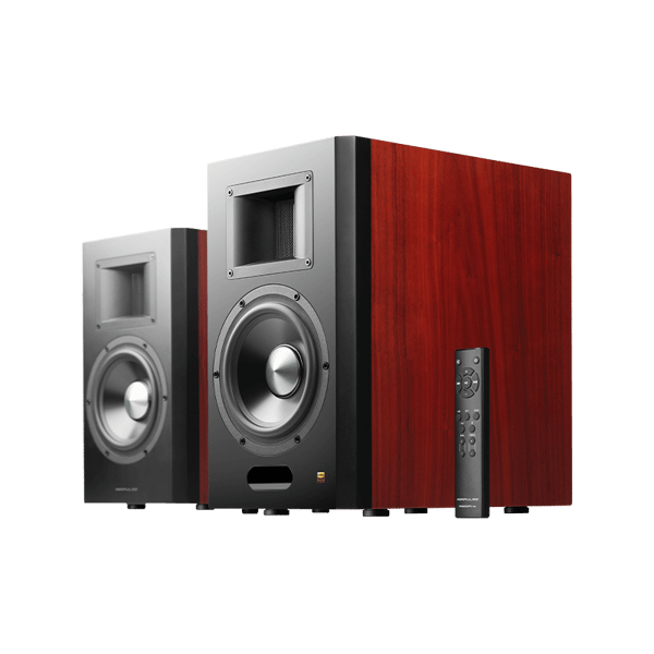 The bookshelf speakers feature a technical but elegant design for both speakers. The upgraded 150W high-efficiency power supply ensures the speakers continuously deliver excellent results. The DSP technology helps the built-in amps to separately drive the tweeter and woofer.
