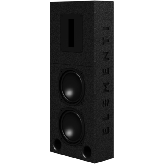 approx. 10m in length where the seats are between 2-8m from the speaker face. Tempest uses a 400mm high unique ultra-wide horizontal dispersion pleated diaphragm tweeter, with a waveguide to increase sound focus and dynamics across the seating positions. The Tempest introduces Neodymium mid-range drivers to maintain the incredible detail down to 300Hz, where the twin 12” bass drivers take over and provide bass extension flat to 30Hz. For home cinema systems to require the ultimate in sound quality and bass steering, Tempest is the pinnacle of Elementi design technology. All ‘AIR’ speakers feature linear phase technology, providing a time accurate, warm and incredibly detailed sound that is difficult to describe.