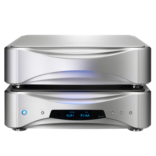 The E1 features a two-chassis configuration that separates the power supply and control section from the main phono stage preamplifier unit. By isolating the power, control, and display circuits—which are sources of vibration and noise—the audio signal can be amplified with exceptional purity.