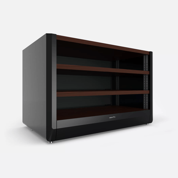 Made for purists. Focus on sound and design. A rack for high demands. Features cladding and an optional drawer.