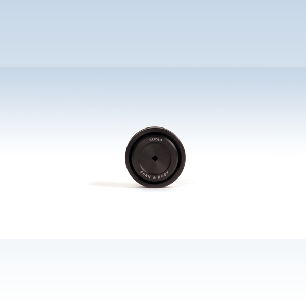 Material: The Fern & Roby Isolation Feet uses high quality visco-elastic polymer which is a high-tech engineered isolation material used in hospitals, engineering environments, and manufacturing spaces where great isolation and dampening is critical. This isolation material absorbs up to 95% of shock energy and performs across frequencies from 10 to 30,000 Hertz. The body of the feet is made from 6061 aluminum, turned and machined in our own CNC machine shop. The aluminum parts are black anodized and we laser engrave them. They have a cork pad on the bottom as an additional isolation layer.