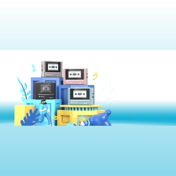 Classic tape player design | Dynamic retro UI 3.5+4.4 dual outputs | Dual DACs Supports Bluetooth transmission Supports microSD card | Plays a wide variety of formats Supports native DSD | 15-hour long battery life