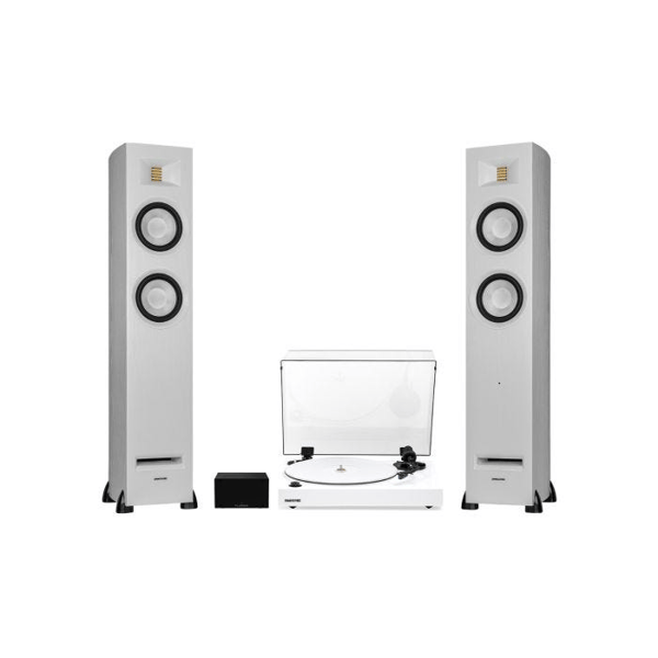 Immerse yourself in the ultimate listening experience by pairing a fully loaded high fidelity turntable with endlessly versatile, room-filling 150-watt powered floorstanding speakers
