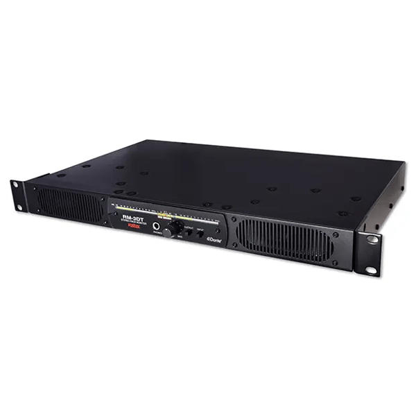 The RM-3DT is a rackmount monitor with built-in 10W × 2 power amplifiers equipped with Dante® audio networking, a feature developed by Audinate that enables the transmission of multiple uncompressed digital audio signals.