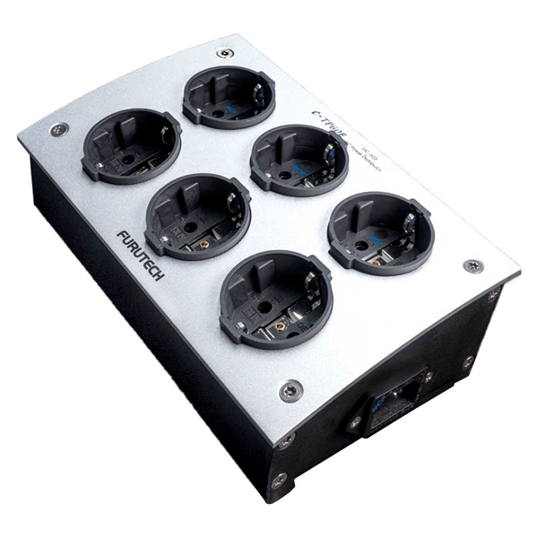 Internal wiring is FURUTECH μ-14 wire (14 AWG) to guarantee low resistance. Furutech FI-E30 NCF high-end grade schuko sockets are wired to the Furutech FI-06 NCF (R) IEC input of the e-TP60E NCF. IEC inlet FI-06 NCF(R): α (Alpha) Pure-Copper Rhodium-plated Conductor / Body materials: Nylon/fiberglass with special “NCF” anti-resonance damping material – Nano-sized crystalline, piezo ceramic particles and carbon powder. SCHUKO Chassis Sockets feature rhodium-plated pure copper, non-magnetic conductors for stable, long lasting, optimized power transfer.