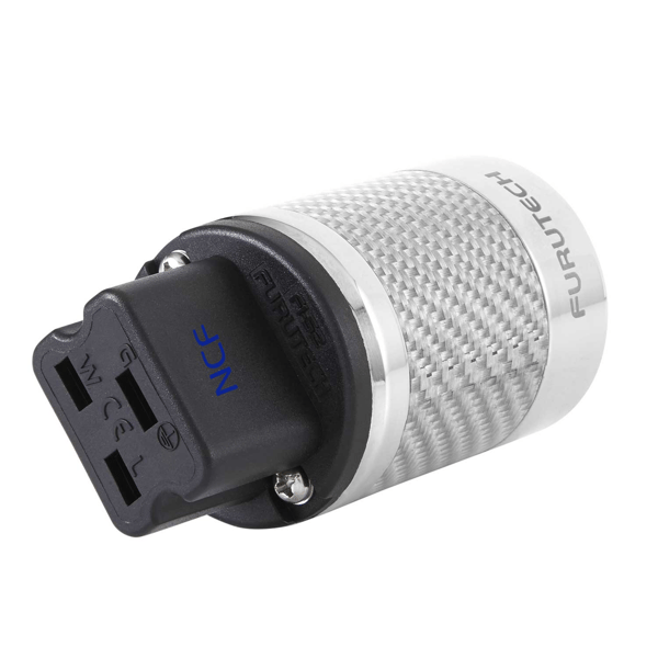 A multilayer nonmagnetic stainless steel and silver plated carbon fiber shell incorporates a special damping and insulating acetal copolymer. Furutech settled on stainless and silver plated carbon fiber for the outer housing after extensive listening sessions with Japanese industry figures and audiophiles.