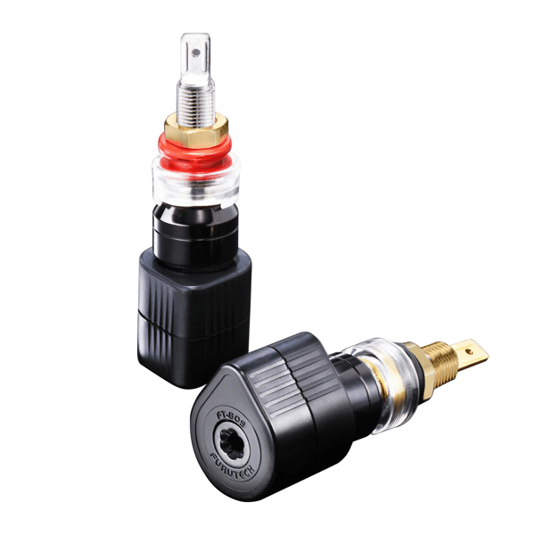 Furutech’s Torque Guard Binding Posts are the result of meticulous engineering and careful audition of various suitable materials. The FT-809 features α (Alpha) pure copper conductor for minimal impedance, and features a nonresonant polycarbonate housing with eutectic copper alloy ring. The unique patent-pending Torque Guard technology prevents over-tightening, allowing each post to be evenly set up for best channel balance and signal transfer.