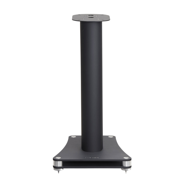 The FS8 speaker stand ensures optimum rigidity for our stand mount loudspeakers. Suitable for the F700, F701 and F1-8 with its dedicated fixing points and bolts or coupled with the optional adaptor plate and pressure sensitive putty, it is ideal for the F1-5. The rigid steel top plate leads to a contoured aluminium mass loading central column with a discreet integrated cable management system. Machined from aluminium, the sculpted plinth offers a stable footing and easy levelling on a solid platform. Twin 8mm thick plates are separated by aluminium spacers that form heavyweight turrets for the floor coupling spikes and their large knurled lock rings. Machined aluminium cups are provided to protect wooden floors. Built in the UK, and finished in satin anodised black and polished, the FS8 is a complementary addition to your stand mount loudspeaker.