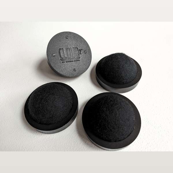Large Wood Cloud22 bases, for a warmer, more musical sound compared to acrylic bases, available in a matte black finish. For audio and source components weighing up to 80 lbs. (each Large Wood Cloud22 Base can support up to 20 lbs.). Sold in sets of four (price shown is per set).