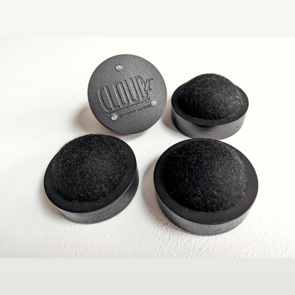 Medium Wood Cloud22 bases, for a warmer, more musical sound compared to acrylic bases, available in a matte black finish. For audio and source components weighing up to 40 lbs. (each Medium Wood Cloud22 Base can support up to 10 lbs.). Sold in sets of four (price shown is per set).